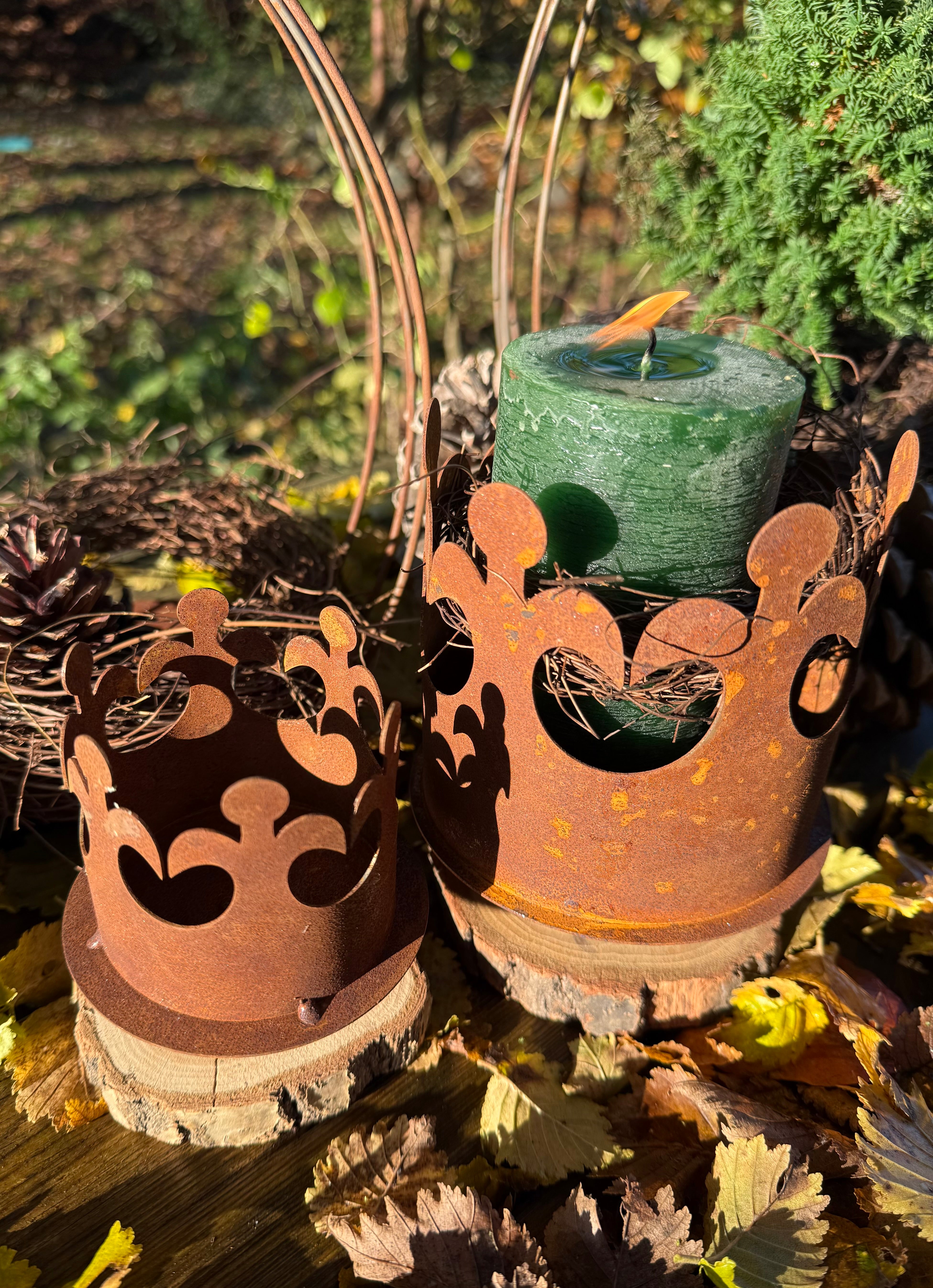 Du kannst die Kronen von oben in deine alten Hölzer schrauben, sie mit Kerzen kombiniere und so eine festliche Atmosphäre zu schaffen. Lass deiner Kreativität freien Lauf!