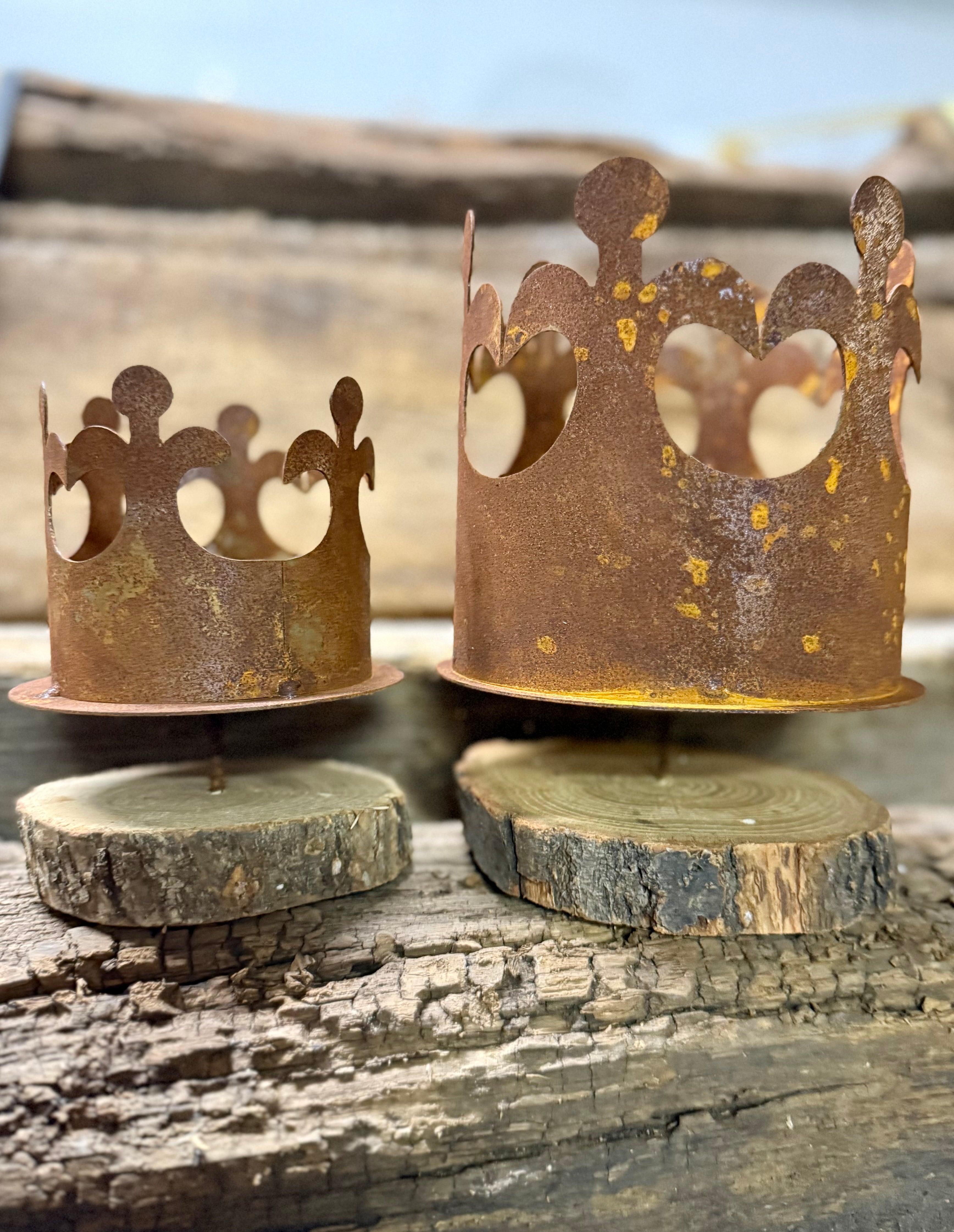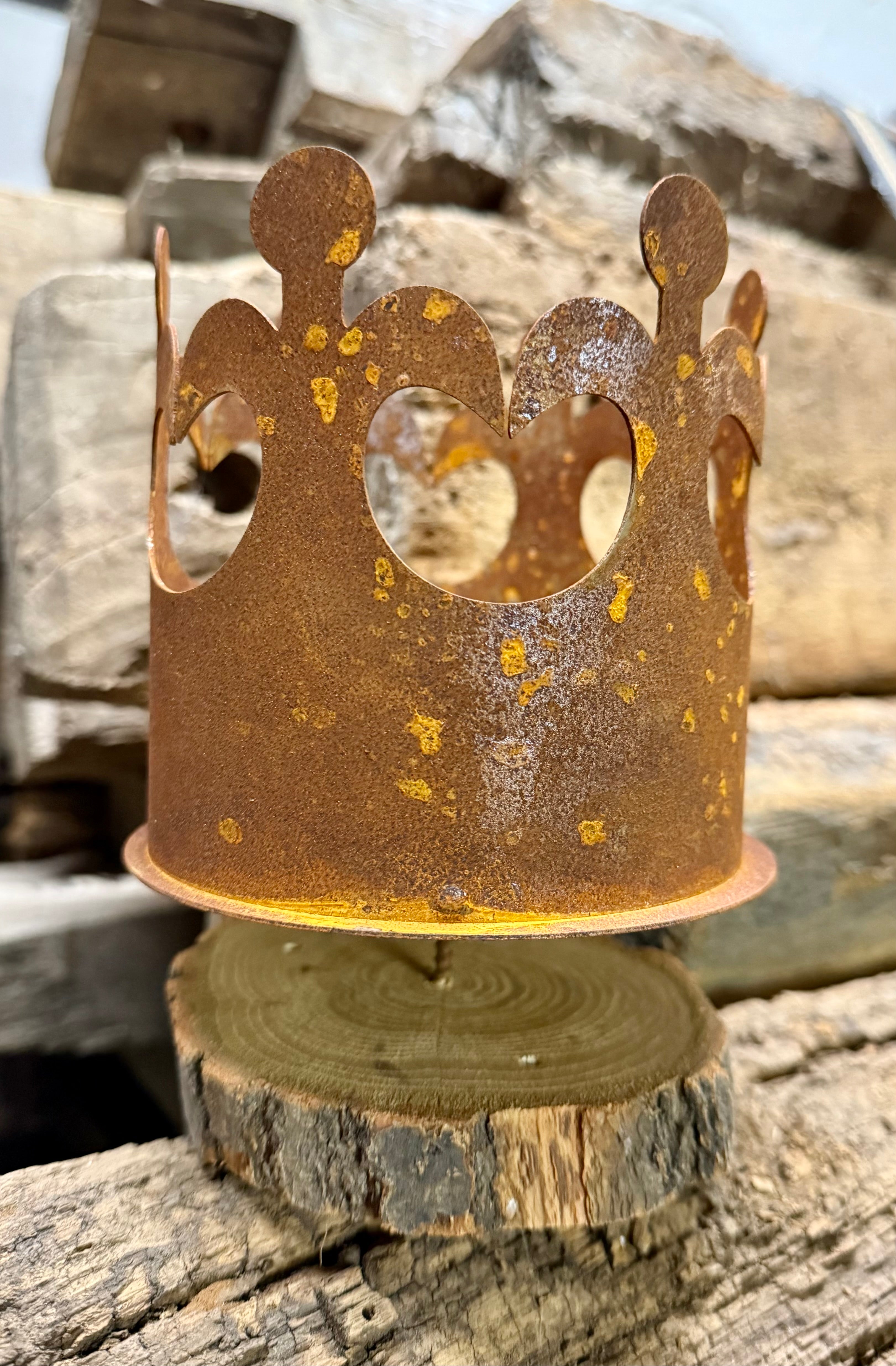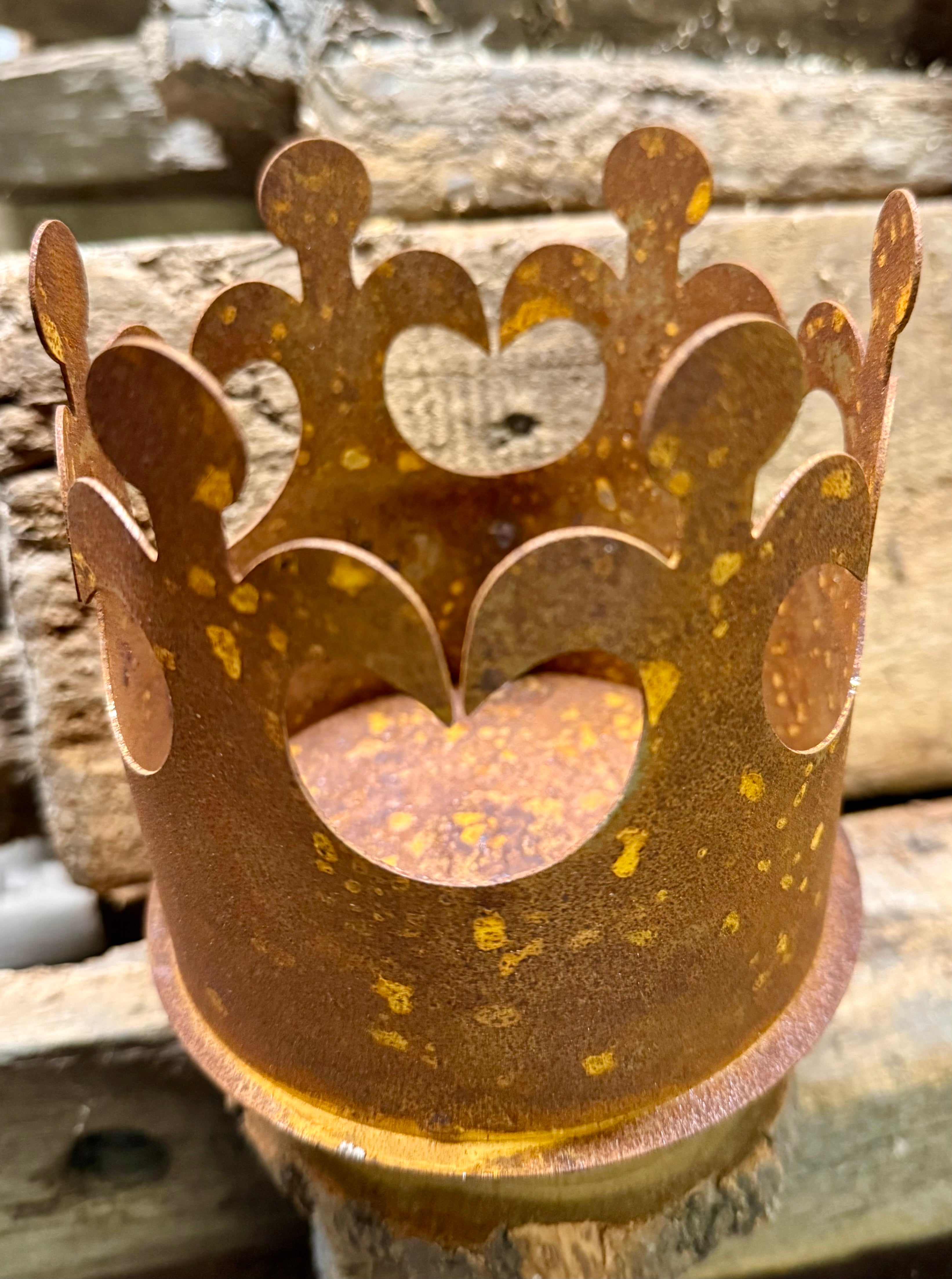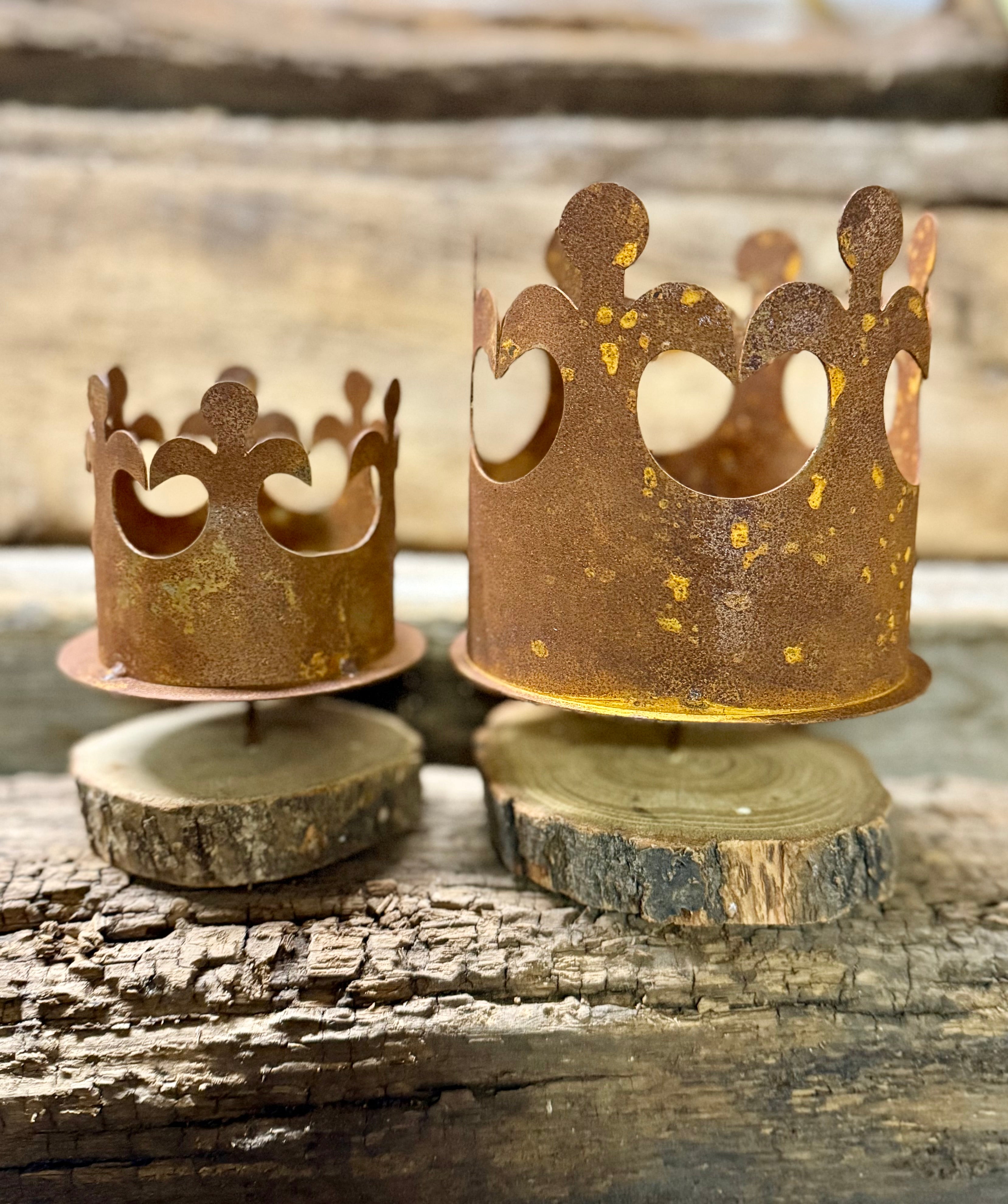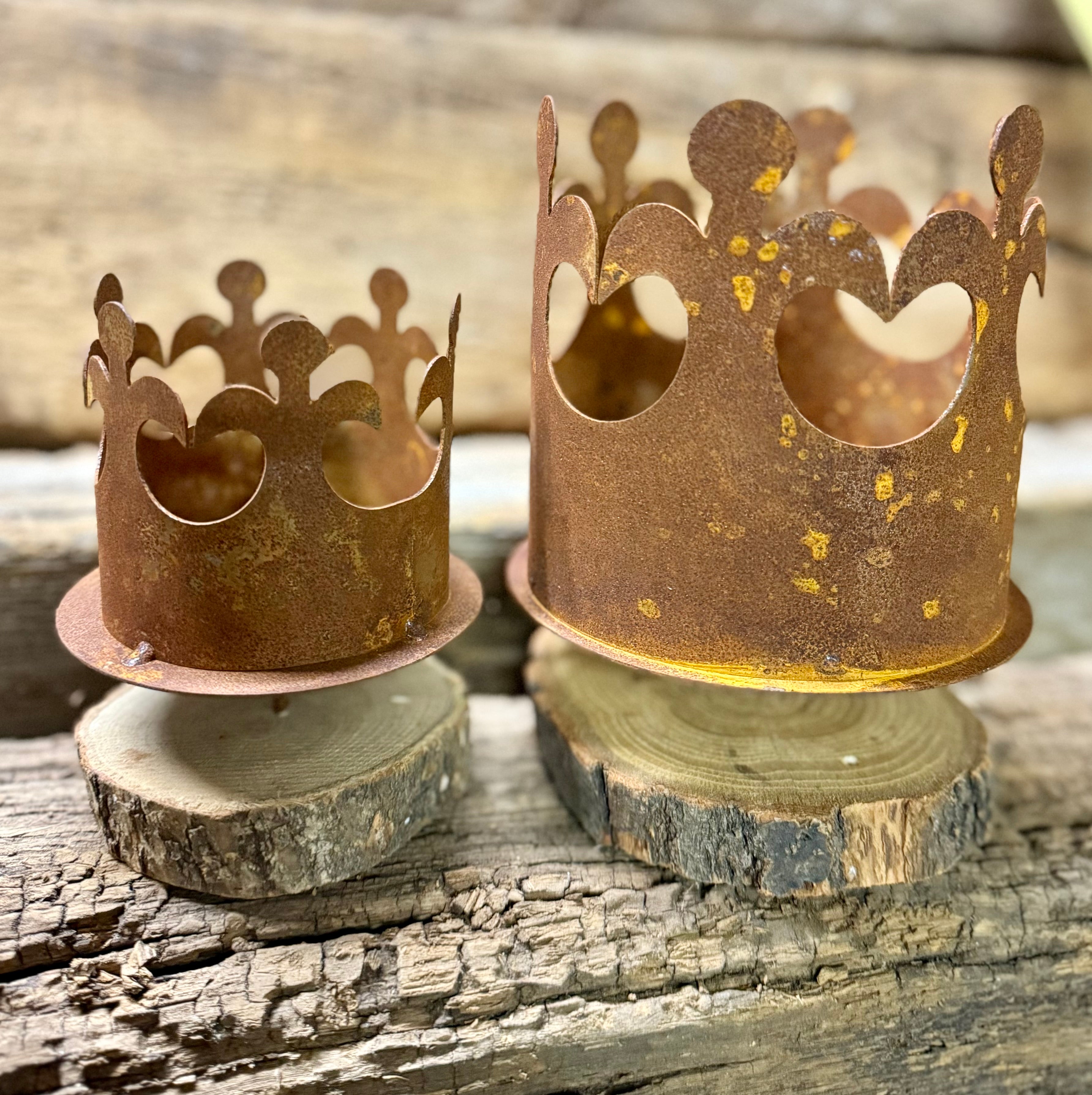 Verleihe deiner Deko einen modernen Touch mit unseren Kronen zum Einschrauben. Diese wunderschöne, kleine Krone hat einen Durchmesser von ca. 7 cm und eine Höhe von ca. 7 cm, zzgl. der unten angebrachten Schraube. Die größere Krone hat einen Durchmesser von ca. 11 cm und eine Höhe von ca. 11 cm, zzgl. der unten angebrachten Schraube. Das Krönchen eignet sich hervorragend als Kerzenhalter oder kann mit einer kleinen Vase und frischen Blumen kombiniert werden, um ein absoluter Hingucker in deinem Garten oder auf der Terrasse zu sein.