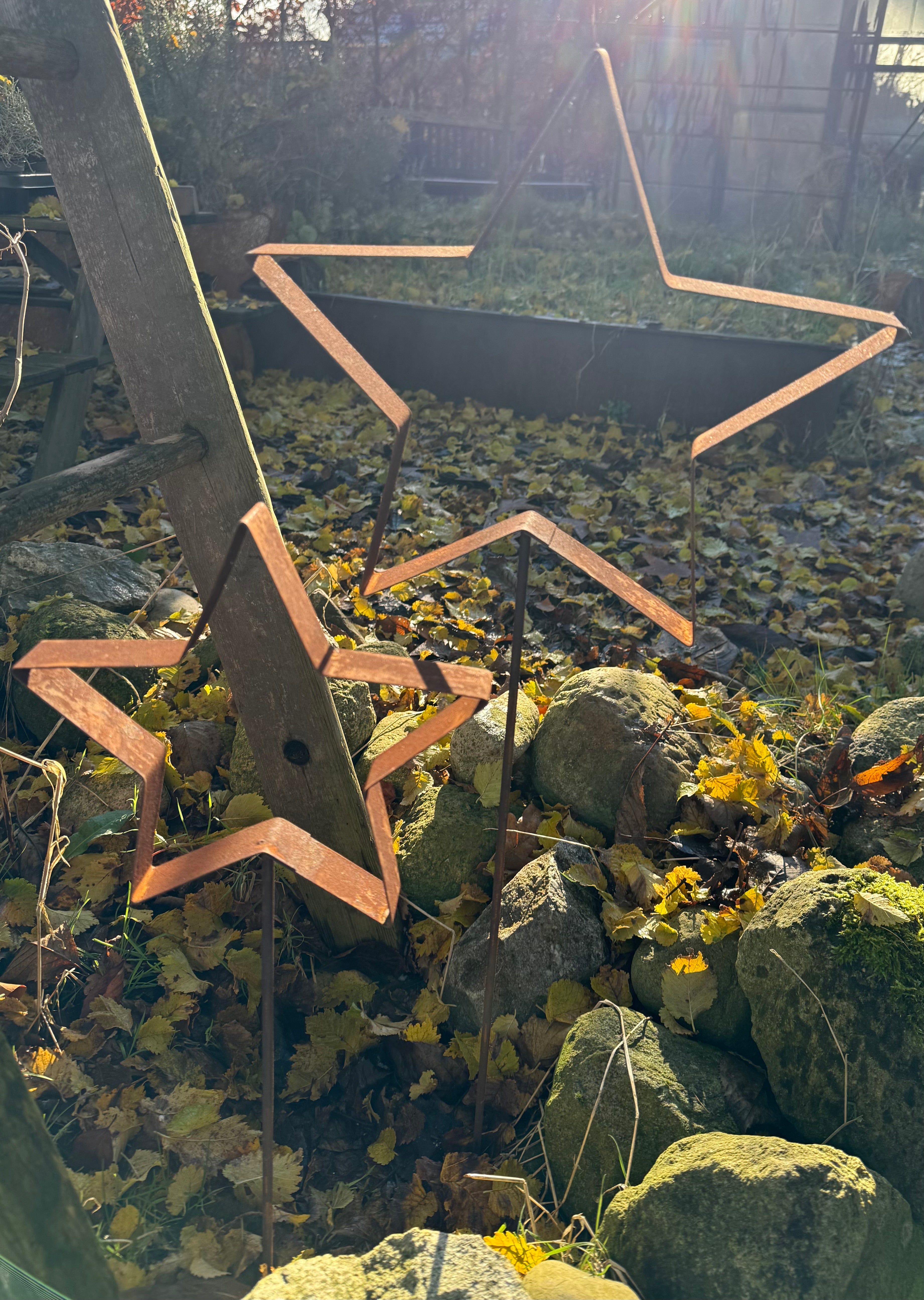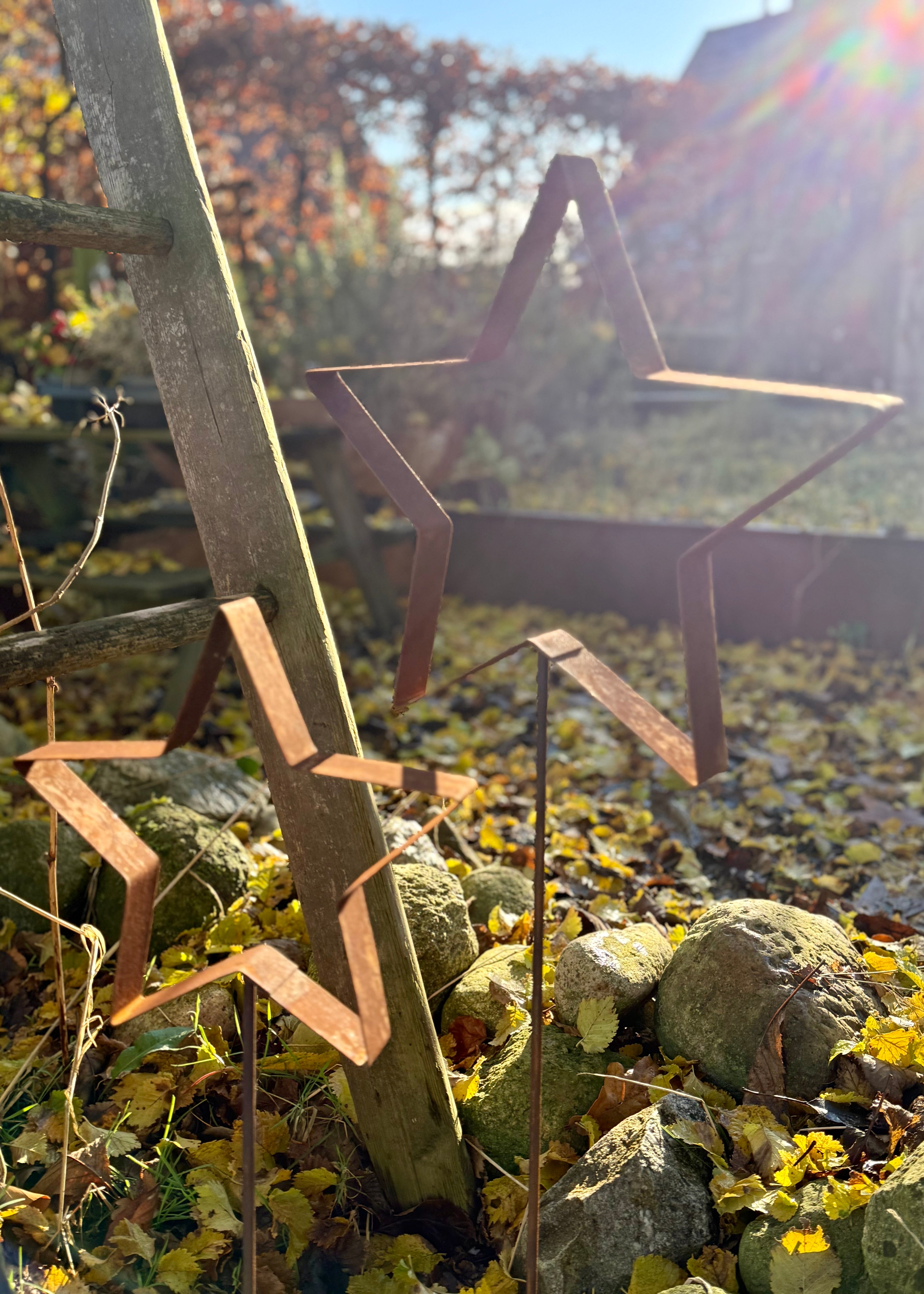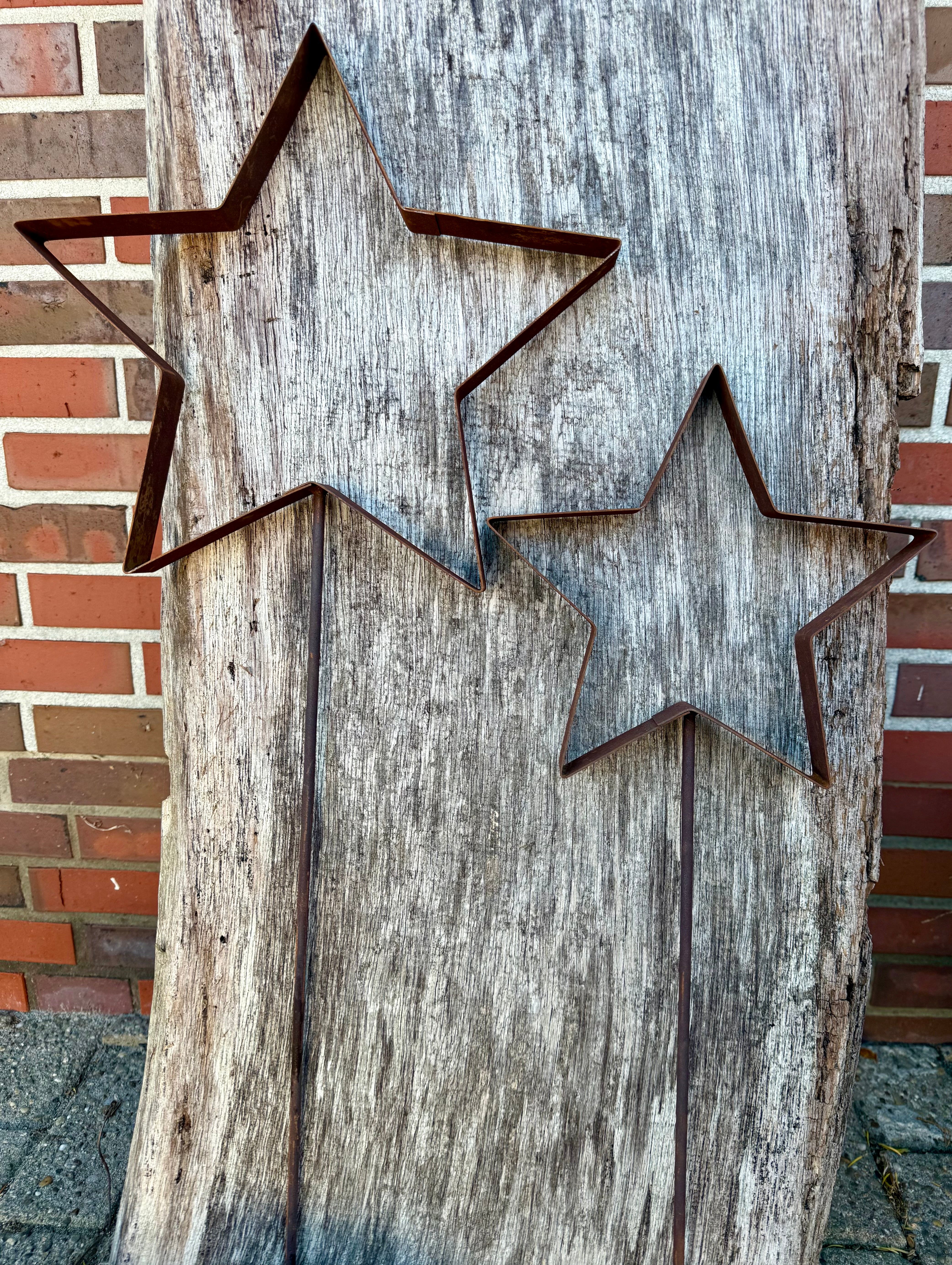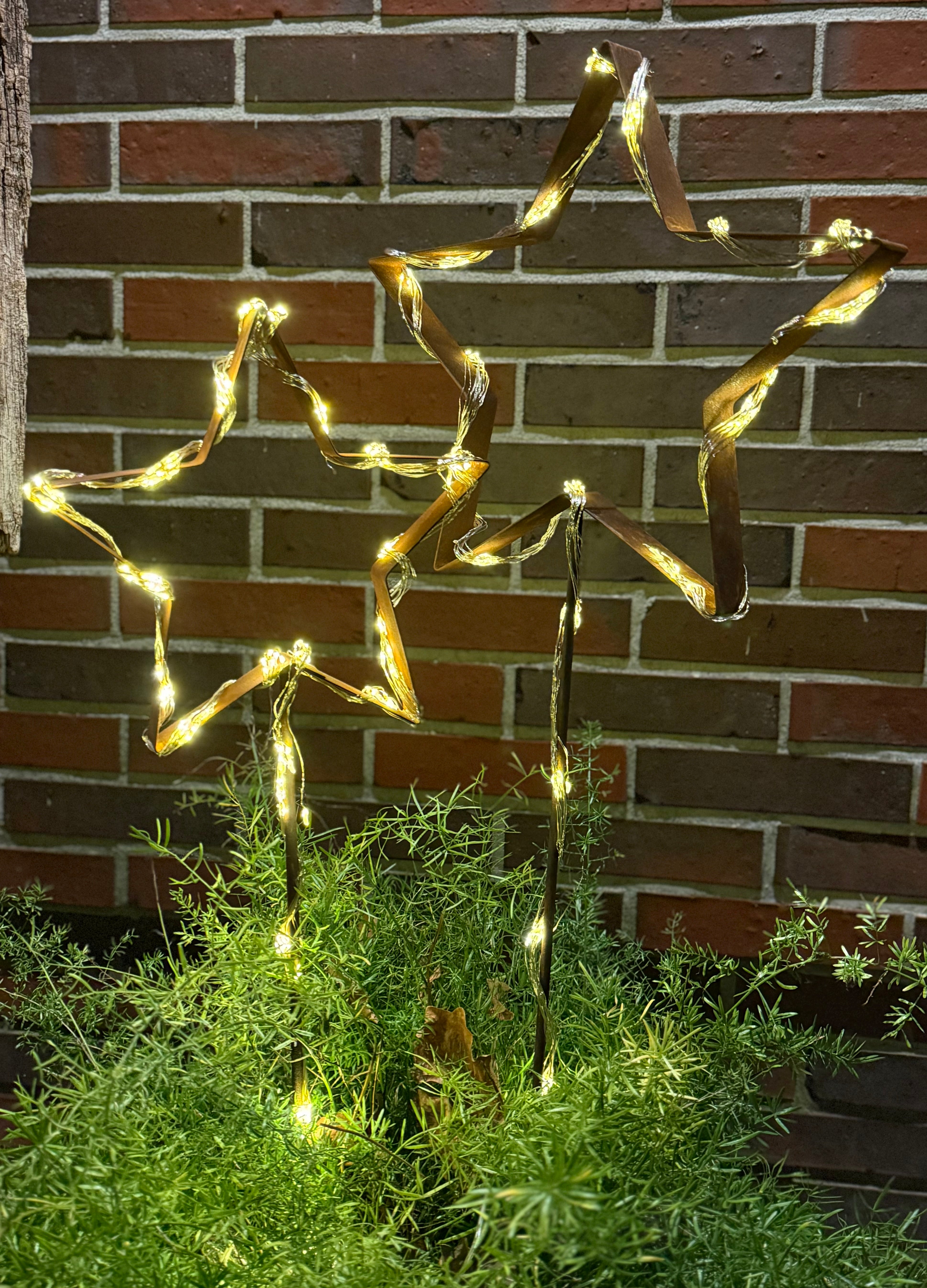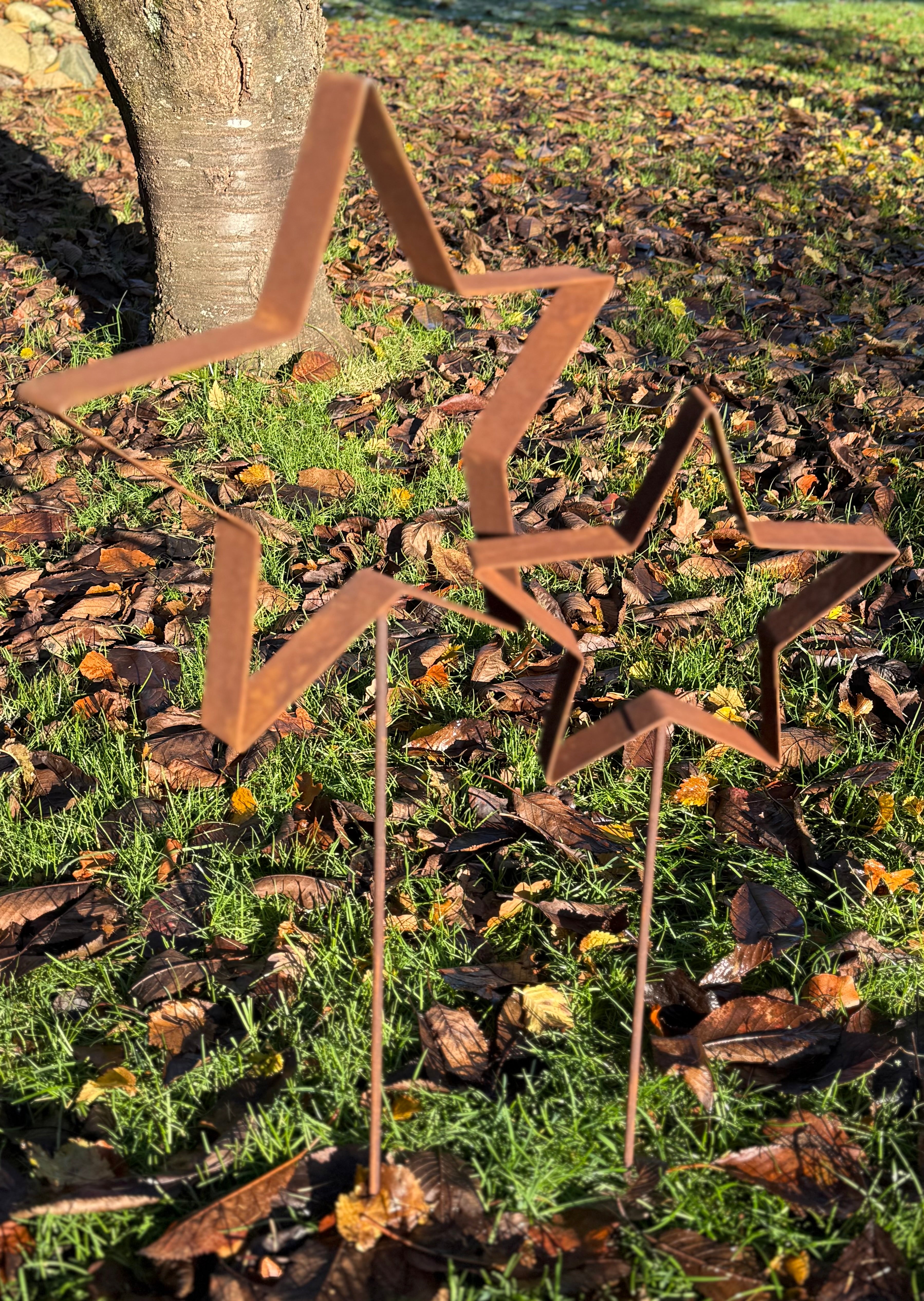 Gestalte deine Winterdeko individuell mit unserem Stern als Gartenstecker. Der kleine Stern hat einen Durchmesser von ca. 23 cm, der grosse Stern hat einen Durchmesser von ca. 30 cm und besteht aus hochwertigem, gerosteten Metall. Er verfügt über einen Stab zum Einstecken in deine Beete oder Pflanzkübel.